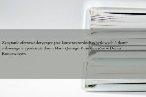 Zapytanie ofertowe dotyczące prac konserwatorskich zabytkowych 3 tkanin z dawnego wyposażenia domu Marii i Jerzego ...